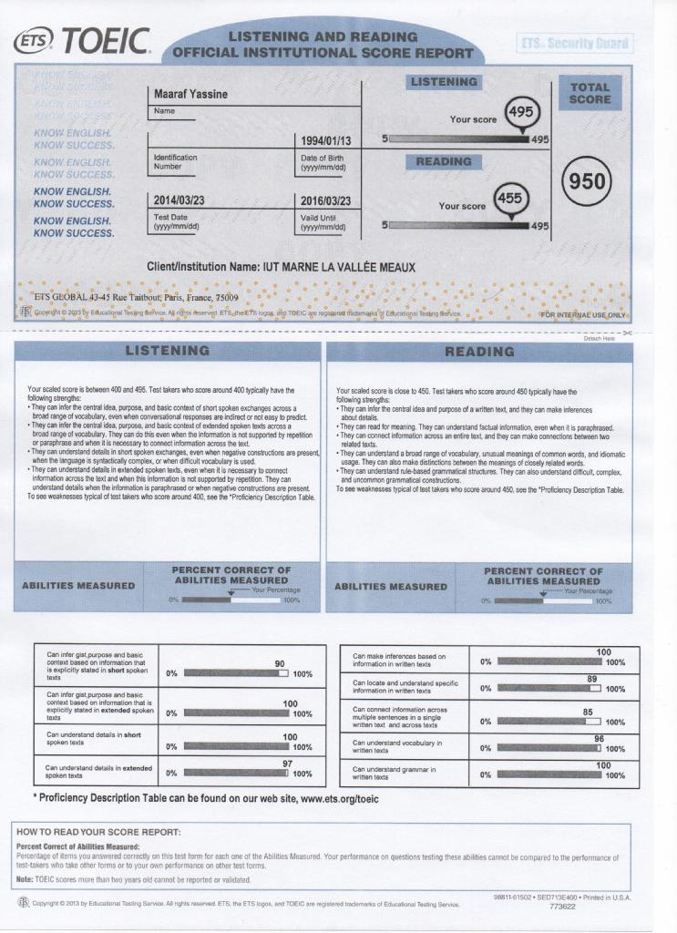 Trilingual (English, French, Arabic), good level both oral and written. Successful tests: TOEIC, TOEFL, SAT.